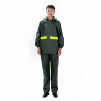폴리 에스테르 코팅 PU 비 정장 긴 비옷 짙은 녹색 하이 비스 안전 비옷 노동자 노동 낚시 농업 사용